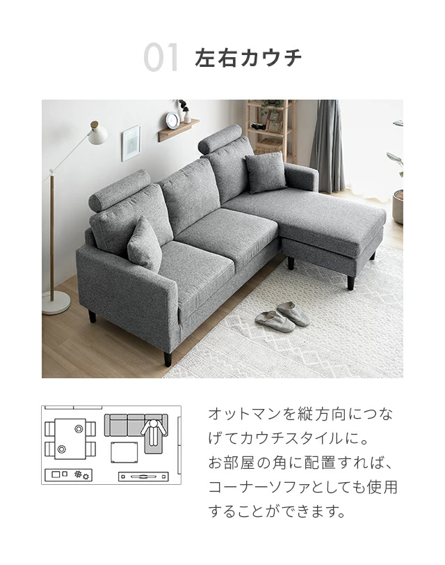 ソファ ソファー 3人掛け ローソファ 肘付き コーナーソファ カウチソファ 北欧 シンプル カウチソファー モダン おしゃれ カウチ ヘッドレスト colon big_ki 新生活