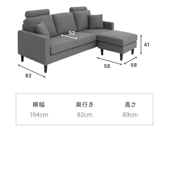 194×82(カウチ使用時140)×890(SH41)㎝