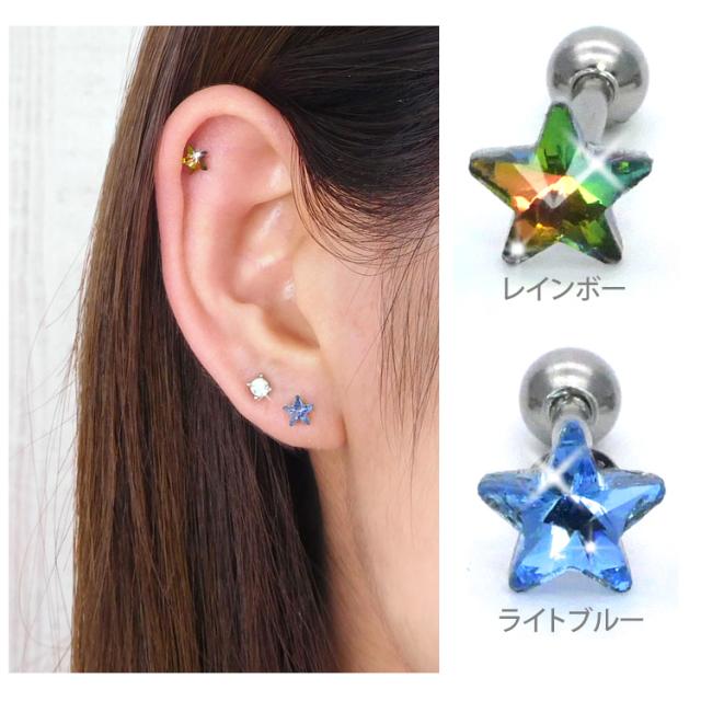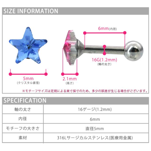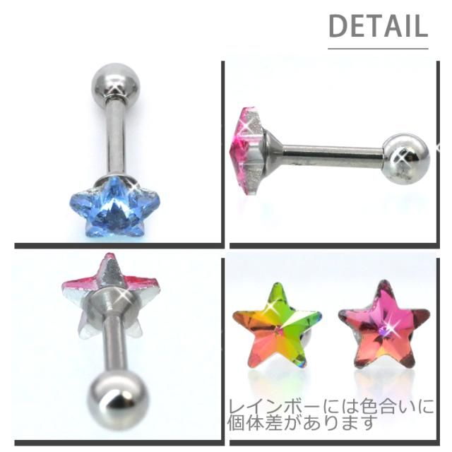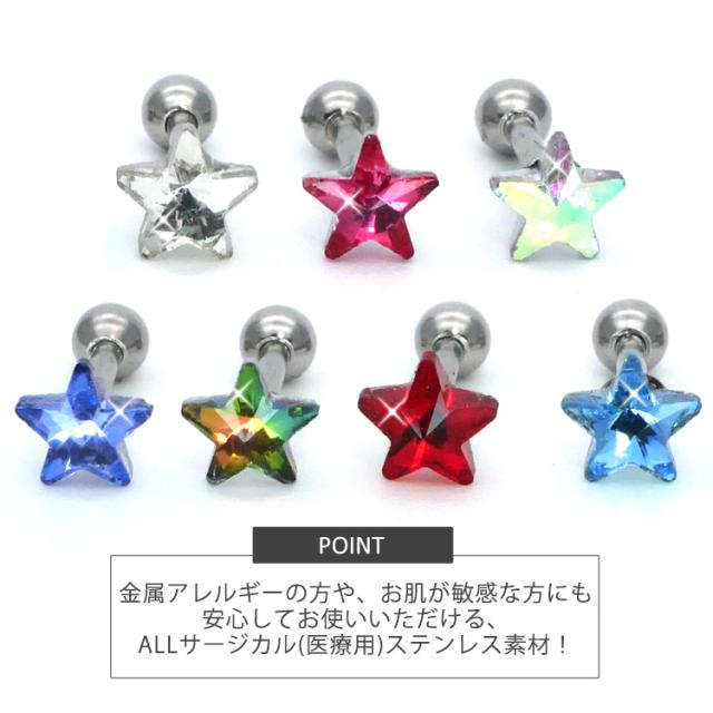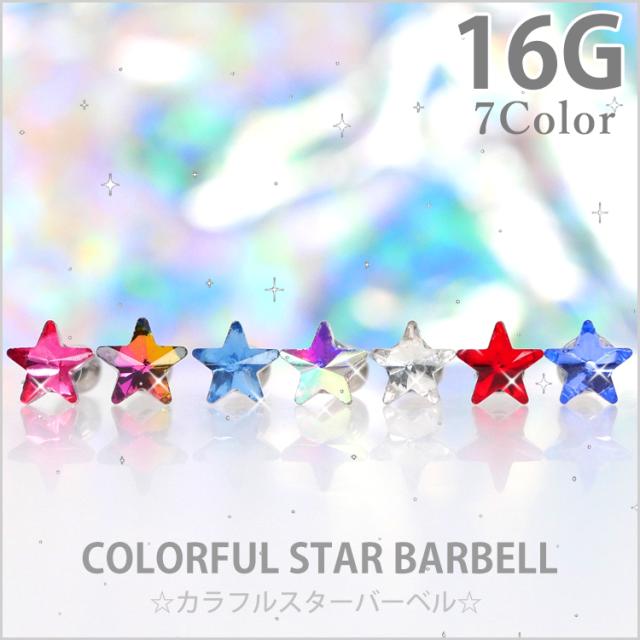 ピアス 軟骨 ボディピアス Soeur de Nana カラフルスターバーベル 16G 星 ストレートバーベル