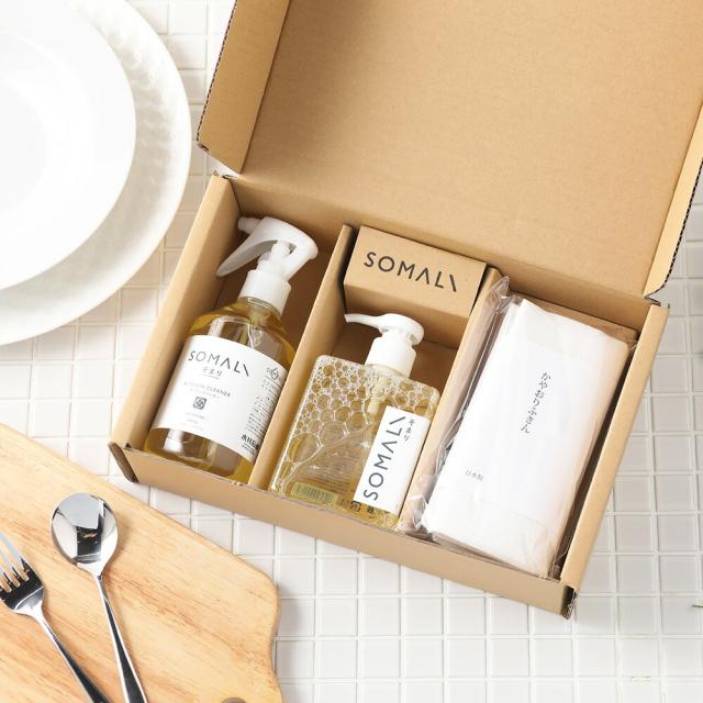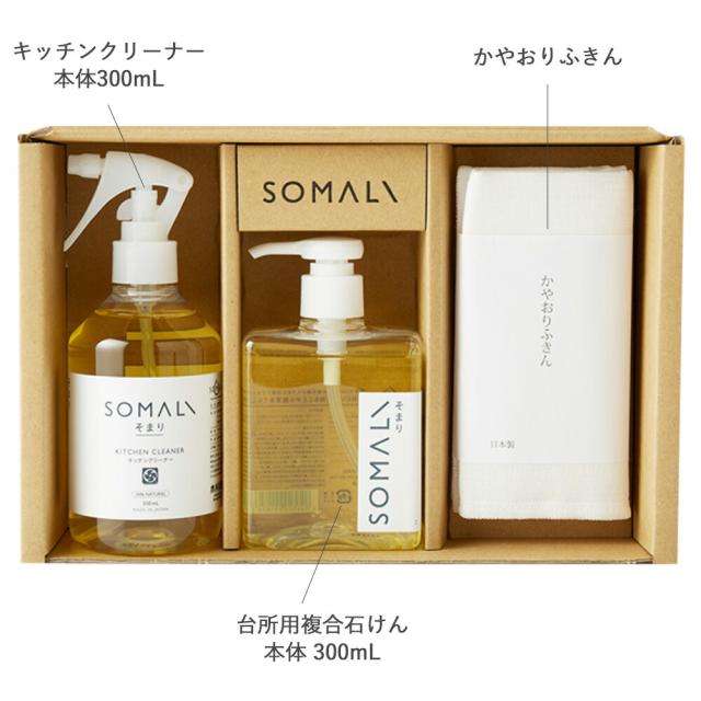 | SOMALI(ソマリ) ギフトJ 台所セット (キッチンクリーナー 300mL / 台所用複合石けん 300mL / かやおりふきん)