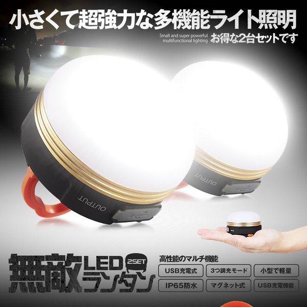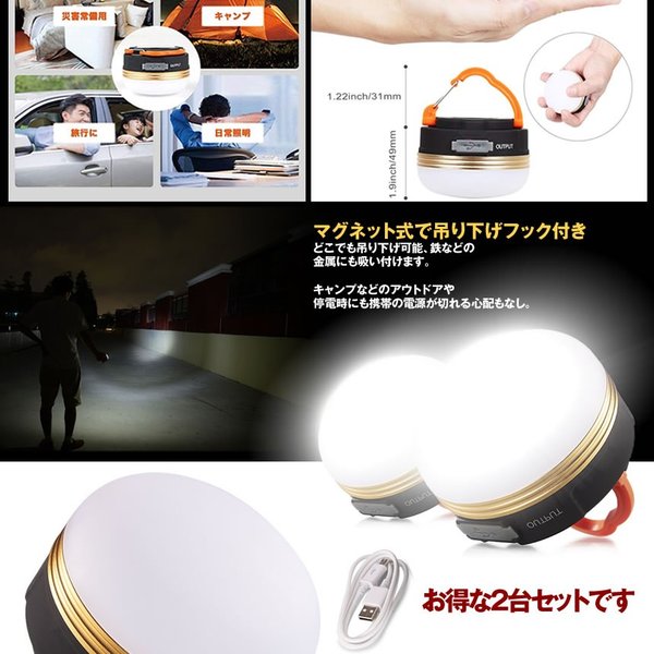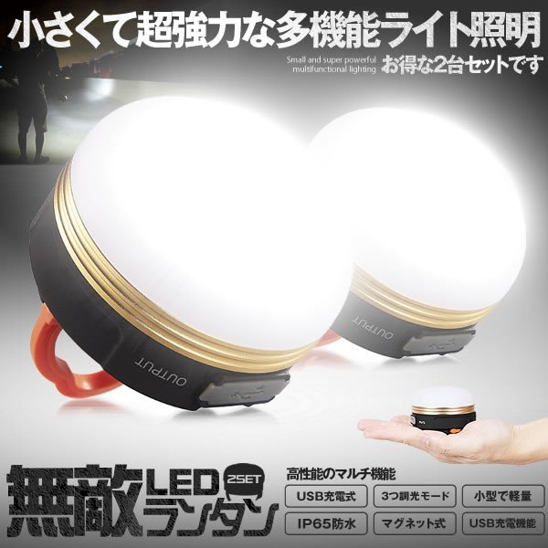 LEDランタン 2個セット USB充電式 アウトドアライト 3つ調光モード 小型 軽量 IP65防水 マグネット式 アウトドア&登山 夜釣り 防災対策 2-MUTELAN