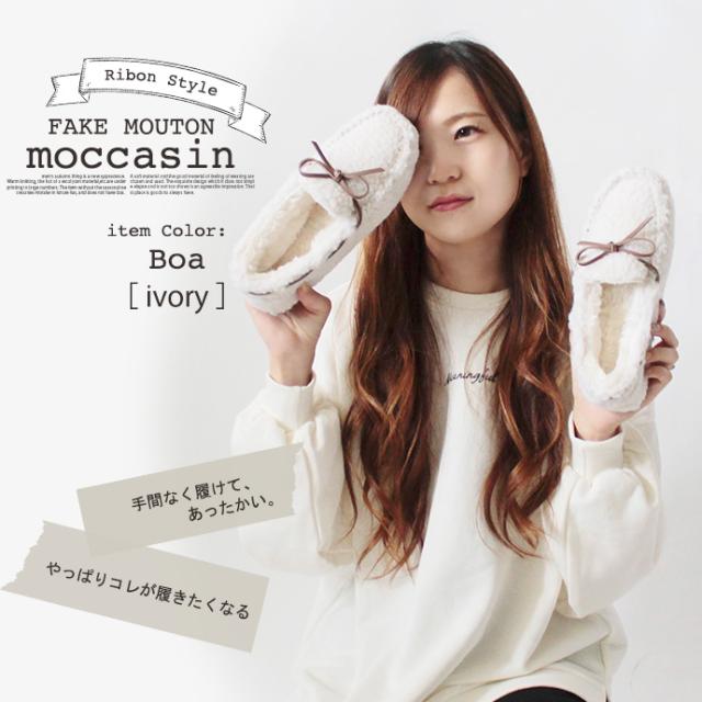 ブーツ 靴 モカシン ムートンブーツ フラットシューズ シューズ くつ あったか ボア フェイクムートン レディース 抗菌防臭 撥水効果 セール 値下げ