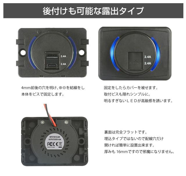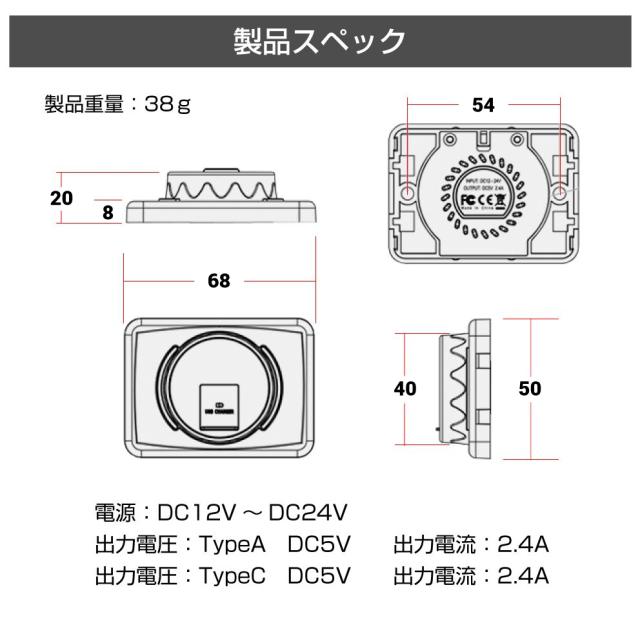 | 商品名 | シャッター付き USBパネル TypeA TypeC 5V2.4A |