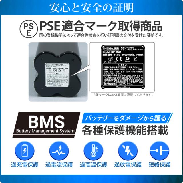 【1年保証】【公式】HEMAJUN(ヘマジュン)電動リール用バッテリー 単品 10000mAh 14.8V ポーチ付 DL10000 ダイワ/シマノと互換性あり 102-09-s