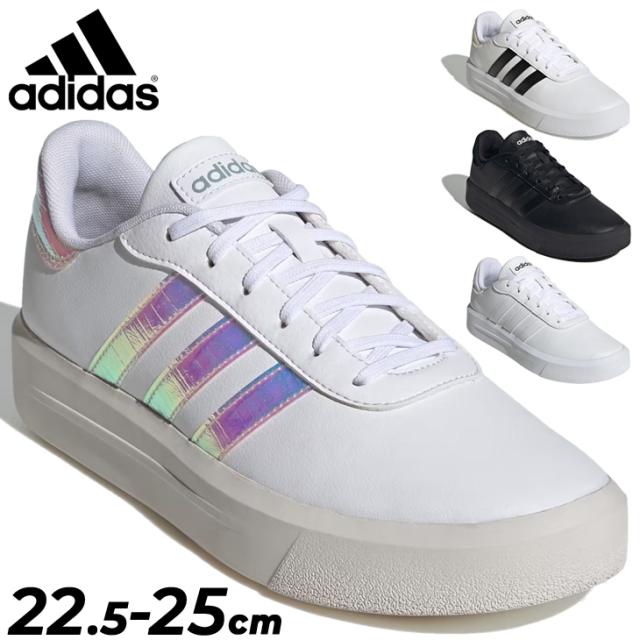 アディダス スニーカー レディース adidas コート プラットフォーム 厚底モデル ローカット コートスタイル スポーツ シューズ ひも靴 女性用 ブラック ホワイト系 運動靴 スポーティ 学生 通学靴 ブランド くつ/courtpf
